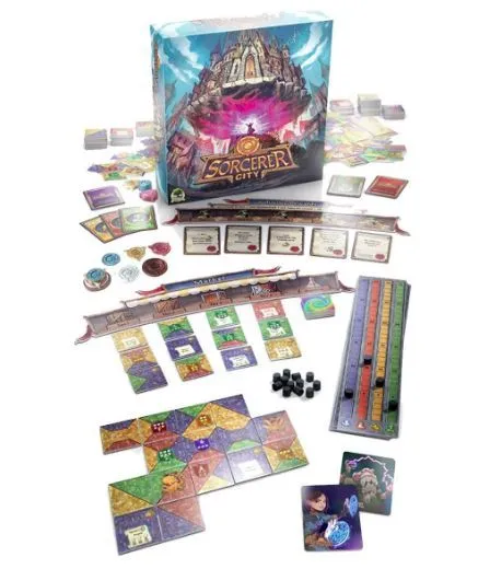 Every year, Sorcerer City is built and rebuilt in magical new ways, with city blocks moving and rotating in crazy directions. You and your fellow players are rival wizard architects in charge of building the same city district over 5 years, expanding and rebuilding to gain the most Money, Influence, Raw Magic, and Prestige. Unfortunately, Sorcerer City has a bit of a monster problem, so you must work hard to mitigate the effects of marauding creatures that attack your city district. The architect with the most Prestige at the end of 5 years will be crowned the new head wizard of Sorcerer City.