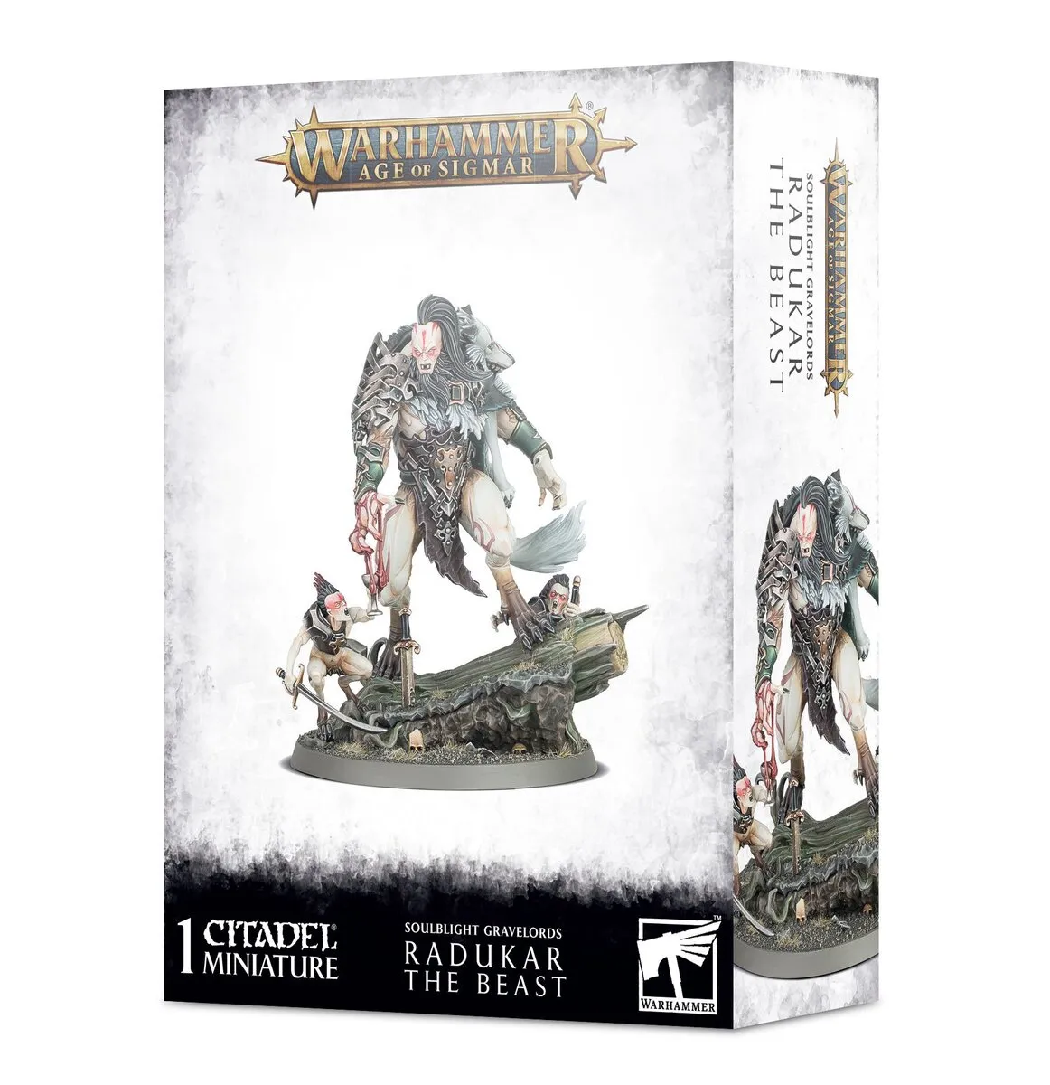This 29-part plastic kit makes one Radukar the Beast model (with two accompanying Vyrkos Blood-born) and comes supplied with a Citadel 60mm Round Base.