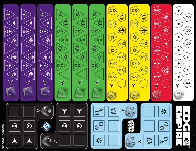 Contains a complete set of fourteen custom dice for Star Wars: Edge of the Empire