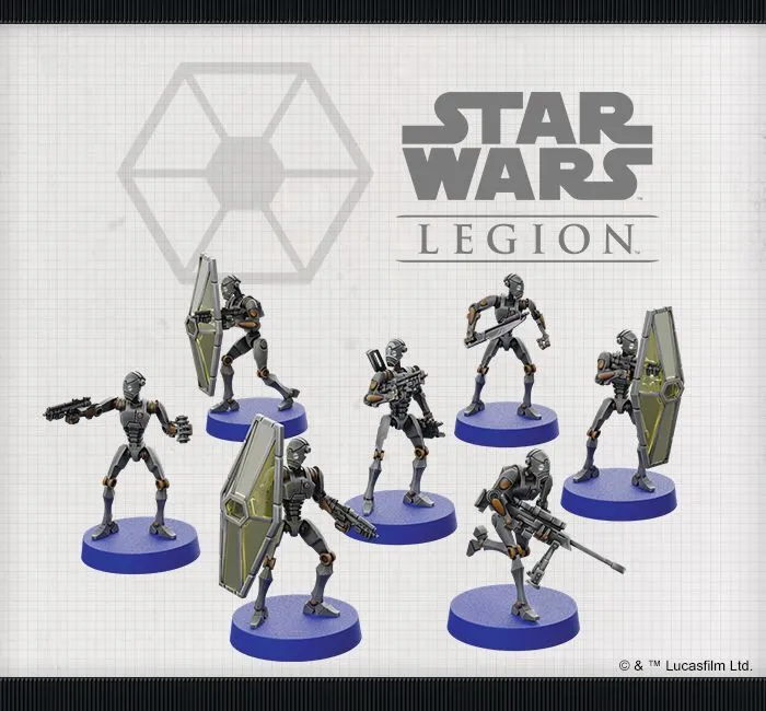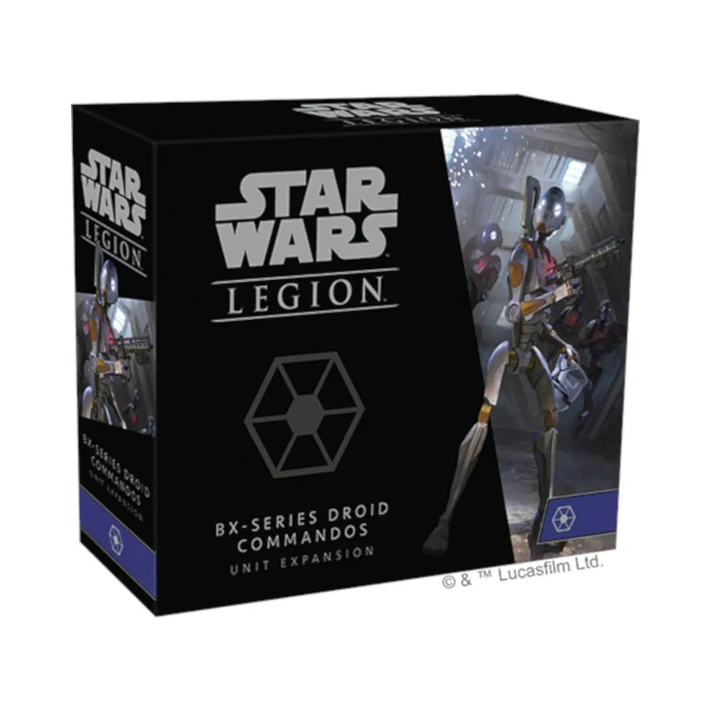 Take your droid army to the next level with the BX-series Droid Commandos Unit Expansion for Star Wars: Legion! The Separatist Alliance’s first special forces unit, BX-series represent a major step forward from their B1 battle droid cousins. Cunning, stealthy, and deadly in close quarters, these lethal droids can operate in squads or independently in pairs. Whether you use them to target key enemy personnel or plant deadly dioxis mines, the seven BX-series droid commando miniatures you find in this expansion are highly customizable. Several weapons options—including blasters, vibroswords, and a dioxis charge—as well as deflector shields give you the freedom to build the unit of commando droids you’ve always wanted, while eight upgrade cards invite you to outfit them to fit your particular strategy. Upgrade your army with the BX-series Droid Commandos Unit Expansion!