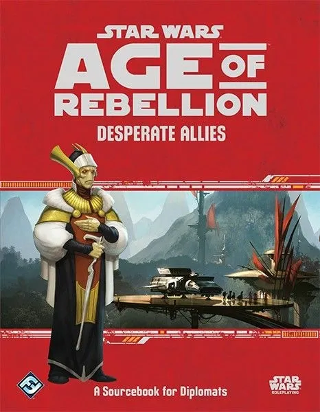 Use your words to fight for freedom with Desperate Allies, a sourcebook for Diplomats in the Star Wars®: Age of Rebellion™ Roleplaying Game. War is one of the major themes of Age of Rebellion, but without Diplomats to spread hope and convert new systems to the cause, war is just meaningless bloodshed. With this career supplement, you can join in tense negotiations, make last-minute deals, and keep the flame of freedom alight in a galaxy overwhelmed by fear of the Empire. In this book, you’ll find three new playable species – Caamasi, Neimoidian, and Gossam – as well as three new specializations for Diplomats: Advocate, Analyst, and Propagandist. You’ll also find plenty of items and vehicles to ensure your Diplomats are completely outfitted for whatever dangers they may face in the service of the Alliance to Restore the Republic. Finally, Desperate Allies introduces rules for creating Rebel bases, allowing you to enrich your campaign with any kind of base.