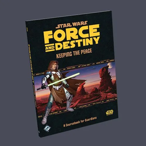 Fight for justice with Keeping the Peace, a sourcebook for Guardian charactrers in the Star Wars®: Force and Destiny™ Roleplaying Game. In a galaxy ravaged by injustice and war, Guardians use the Force to make a positive difference in the lives of others, heal the galaxy’s wounds, and establish peace wherever possible. This career supplement offers Guardian characters incomparable tools and talents to use as they protect the downtodden, establish order, and even lead troops into war. Keeping the Peace introduces three new Guardian specializations – the Armorer, the Warden, and the Warleader – along with three playable species: the hotheaded Lanniks, horned Iktorians, and mammoth Whiphids. Two Guardian Signature abilities are introduced, along with a new Force Power that enables Guardians to shield themselves and others from harmful attacks. Players will find a variety of new armor, weapons (including lighstsabers), and starships with which to outfit their characters, while Game Masters will find extensive suggestions on crafting heroic adventures and epic campaigns.