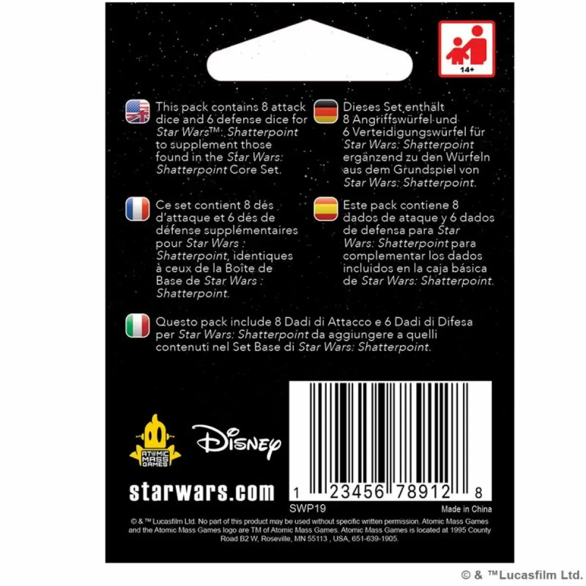 Players can supplement their collection of Star Wars: Shatterpoint dice with this pack. Containing 8 attack dice and 6 defense dice identical to those found in the Core Set, players can stay focused on their battles no matter who’s in their squad. KEY SELLING POINTS