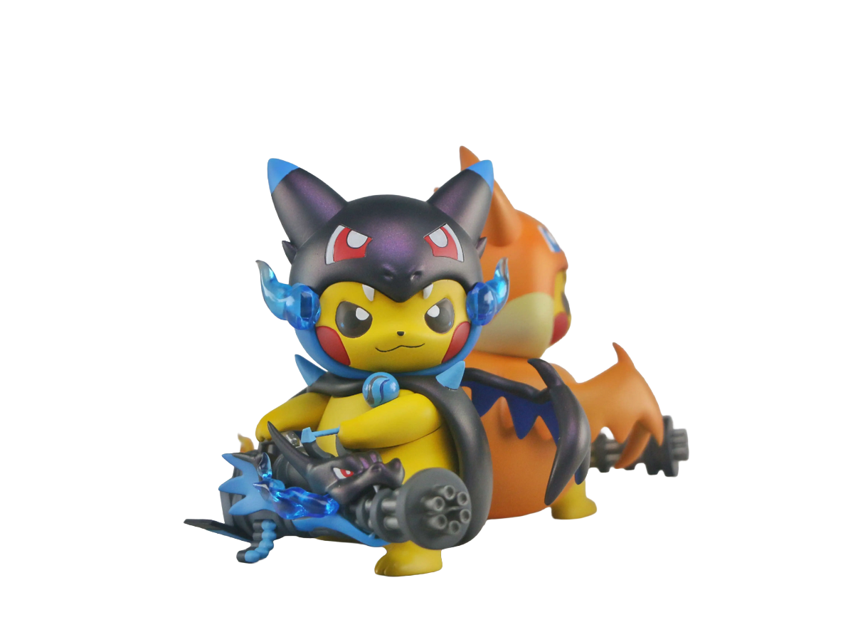 Experience the ultimate fusion of cuteness and fierceness with the Sun Studio Pikachu Cosplay Charizard figure. This unique collectible combines the lovable charm of Pikachu with the majestic power of Charizard, creating a must-have item for Pokémon fans and collectors.