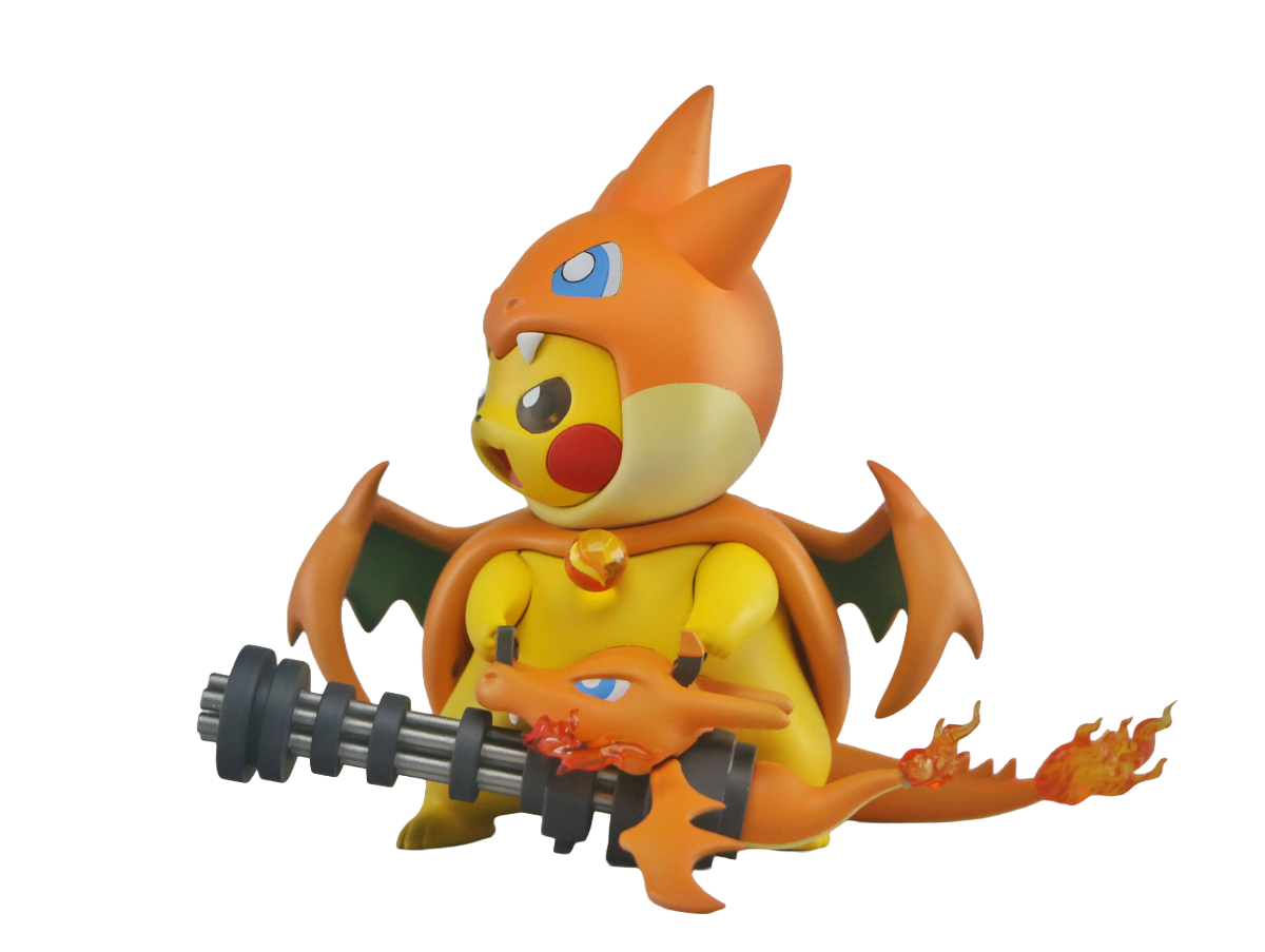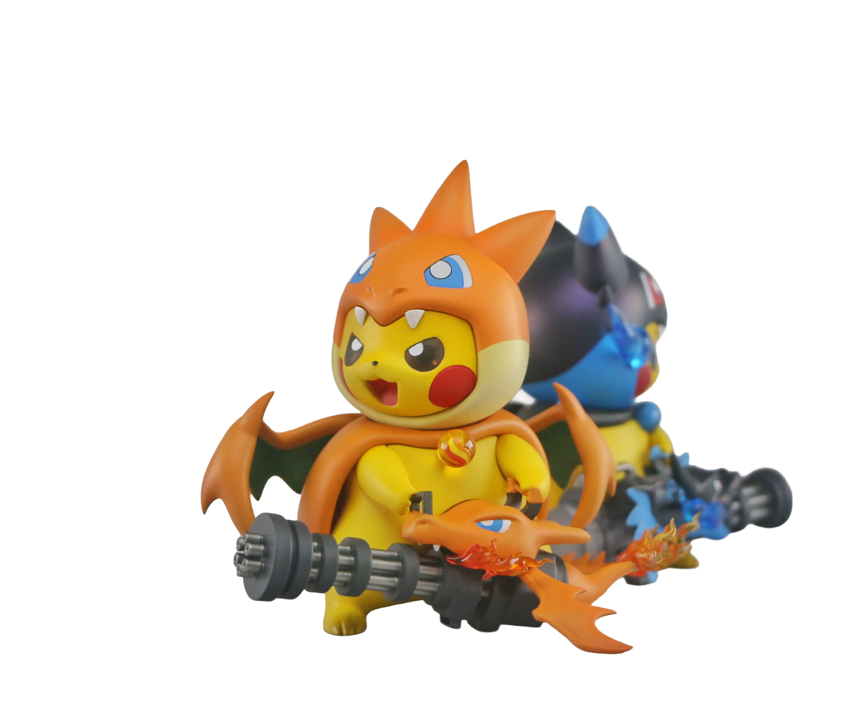 Experience the ultimate fusion of cuteness and fierceness with the Sun Studio Pikachu Cosplay Charizard figure. This unique collectible combines the lovable charm of Pikachu with the majestic power of Charizard, creating a must-have item for Pokémon fans and collectors.