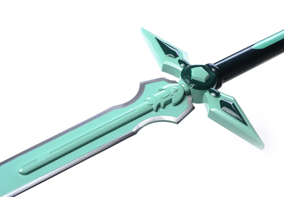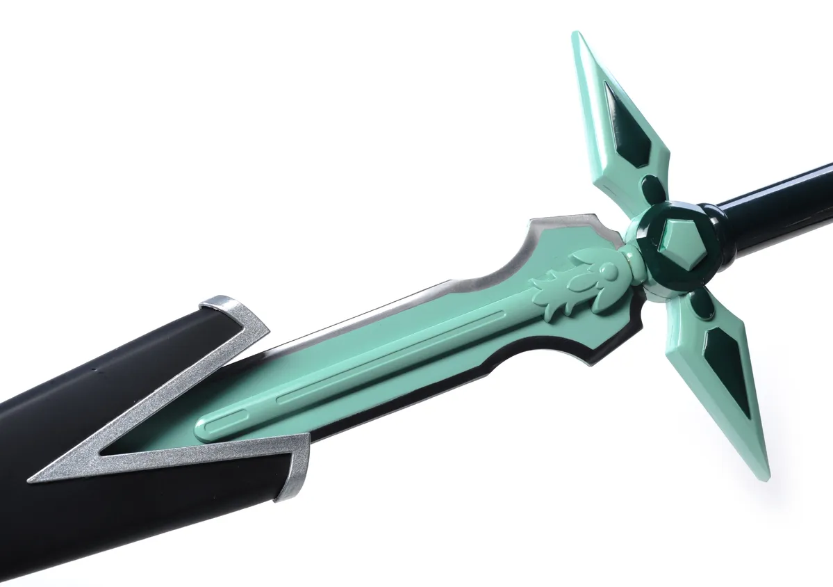 Both swords are designed with blunt edges for safety, ensuring they can be handled or displayed without risk. The set comes complete with a stand, allowing both swords to be displayed together in their full glory. Crafted with attention to detail, these replicas capture the essence of Kirito's powerful dual-wielding style, making them a must-have for any Sword Art Online fan. Whether for cosplay or display, the Elucidator & Dark Repulser Set is a perfect addition to any collection.