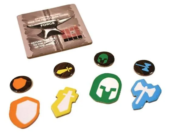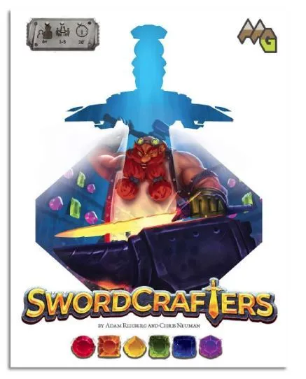 In Swordcrafters, players compete to forge the best sword scoring based on length, quality, and magic. Each round each player makes one cut in a grid of sword tiles to create a separation. After separations phase, each player selects one grouping of sword tiles and assembles them into their sword. When there are not enough sword tiles to form a new grid, scoring occurs.