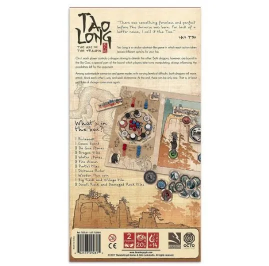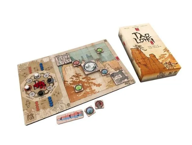 Tao Long: The Way of the Dragon is a circular abstract-like game in which each action taken leaves different options for your foe. In it, each player controls a dragon striving to diminish the other whilst bound together by the Tao; you manipulate tokens on a special board in order to activate your dragon, leaving that same board to be manipulated by your opponent on their turn.
