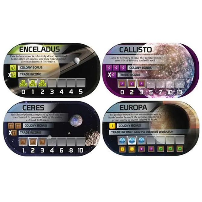 Terraforming Mars: The Colonies is the fourth expansion to the smash hit, Terraforming Mars, which is ranked #5 of all time on BGG. In previous expansions, we explored the other side of Mars, began work on Venus, and showed a prelude for the corporations working on the projects. Now we move to the outer solar system, including the moons of great gas giant planets and establish space stations far out there. Watch the terraforming Mars in new and greater ways in Terraforming Mars: The Colonies!