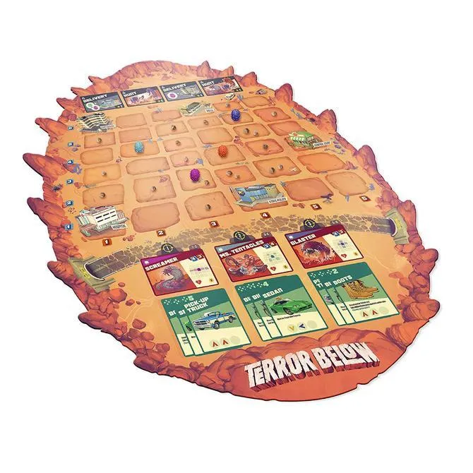 The goal of Terror Below is to be the first player to score 20 victory points (VP) by collecting worm eggs and delivering them to locations around town — or alternatively, by hunting down and killing those vicious worms.