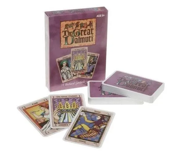 1. The lower the number, the better the rank. The deck is dealt out to all players and the object is to get rid of your cards as fast as possible. The hand begins with one person playing one or more card to the center of the table. The cards played must all be of the same rank (although Jesters are wild, and may be played with any other cards). Each player in turn must now either play the same number of cards of a better rank, or pass. Play continues around the table until everyone has passed; at that point, the cards are cleared and whoever played the last set of cards leads the next round. After everyone has gone out, the players are ranked. For example, the person who first got rid of all his cards becomes The Great Dalmuti. Players change seat position to represent the new hierarchy and begin another round. The Great Dalmuti is generally played for many rounds.