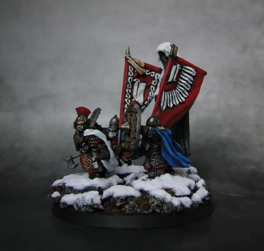 This resin cast kit contains 7 components and sprue of 4 25mm round bases with which to make a King's Champion and 2 Heralds.