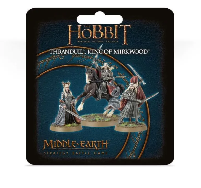 The set contains three resin miniatures – Thranduil in armour (both on foot and riding a horse) and Thranduil unarmoured – supplied with 2 Citadel 25mm Round Bases and 1 Citadel 40mm Round Base. His rules can be found in Armies of The Hobbit™.
