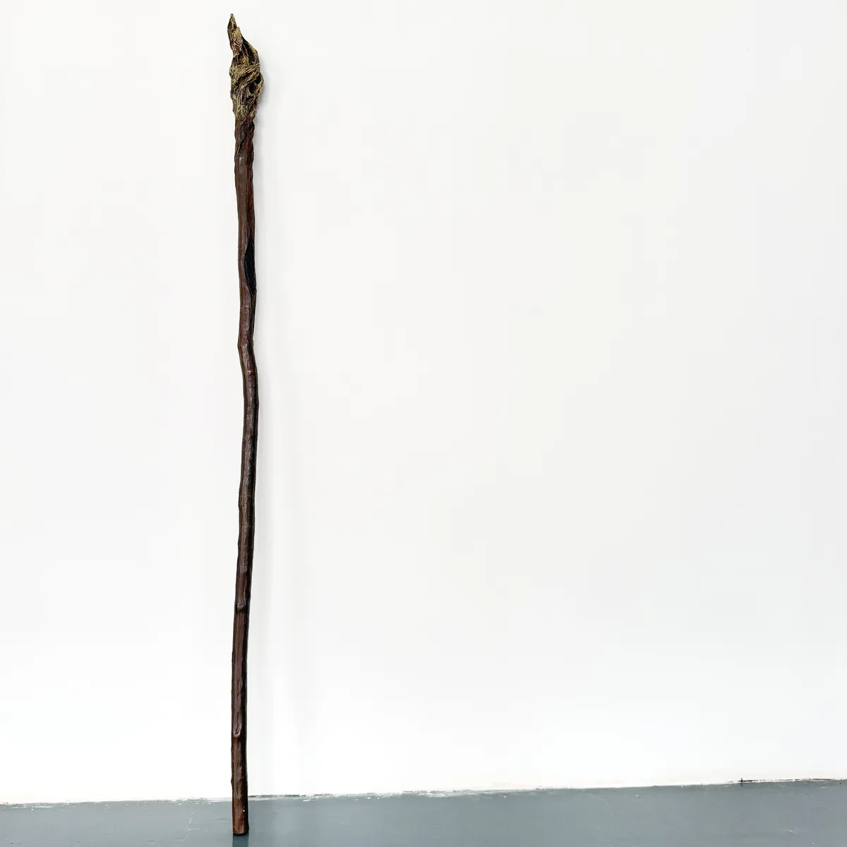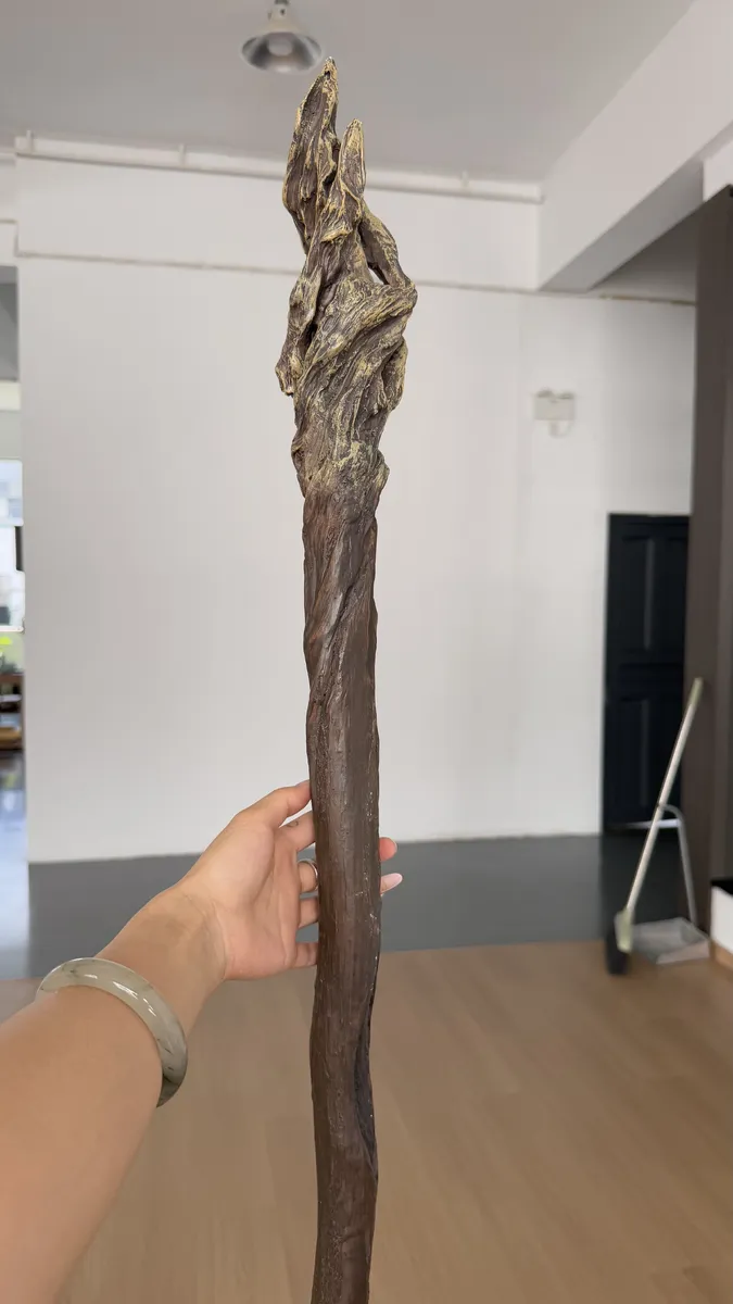 Measuring a substantial 185cm (over 6 feet) in length, this staff is designed for an impressive display presence. The main structure utilizes a durable internal metal pipe (iron pipe) for stability, while the detailed head and grip sections are expertly cast in resin to capture the intricate, weathered wood and root details of the original design. This replica is a spectacular piece for themed displays, cosplay, or fantasy collections.
