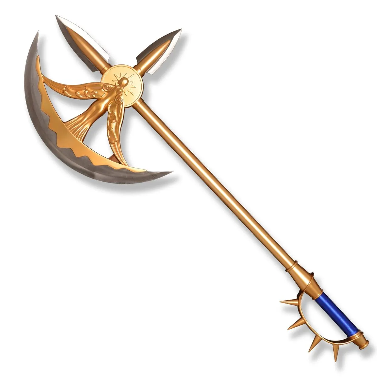 This full-scale replica is forged from high-quality stainless steel, featuring a massive crescent-shaped blade with polished edges and a reinforced handle for durability. The weapon’s intricate detailing and imposing size capture the essence of Escanor’s legendary armament, making it a true showpiece for display or cosplay.