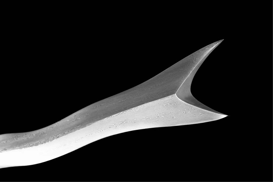 This spear is forged from patterned steel, known for its unique, beautiful grain and superior strength. The blade is hand-forged and meticulously polished, ensuring sharpness and durability. The handle is made from stainless steel and is designed to be detachable, providing both sturdiness and convenience.