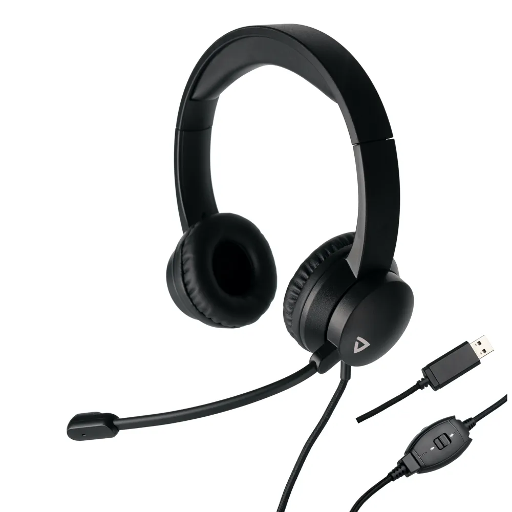 The headset has a soft adjustable headband, comfortable ear cushions, and an adjustable boom microphone and provides a USB-A cable for connecting to both Mac and Windows computers. The 1.8 m braided cable contains controls for volume and mute, bolstering reliability and ease of use.