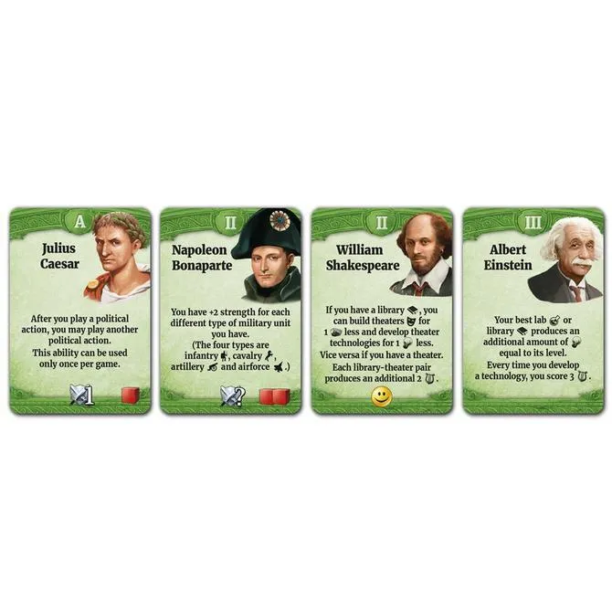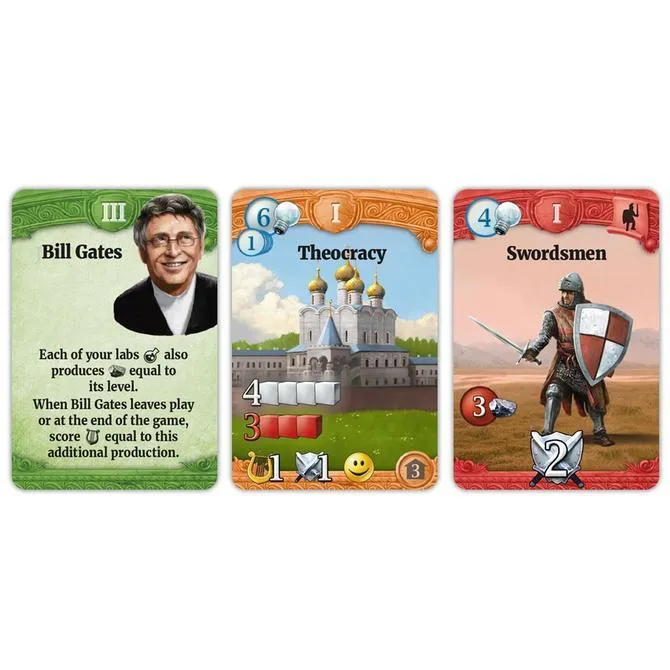 Through the Ages: A New Story of Civilization is the new edition of Through the Ages: A Story of Civilization, with many changes small and large to the game's cards over its three ages and extensive changes to how military works.