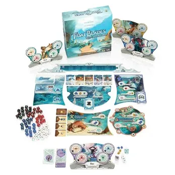 In Tidal Blades: Heroes of the Reef, each player takes the role of a young hero competing to be named a Tidal Blade. The tournament takes place over 5 Days and Nights. By gathering the needed resources, signing up to compete in Challenges and timing your arrival at different islands you can make the most of your Hero’s turns and rise in the ranks of the contestants.