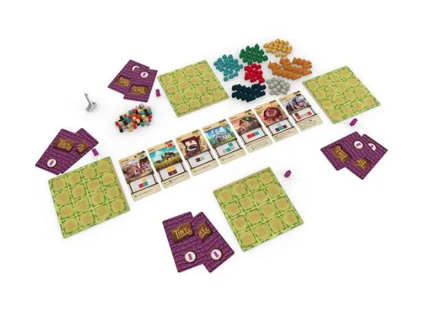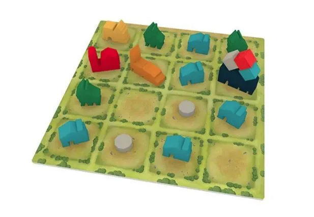 Cleverly plan and construct a thriving town, and don't let it fill up with wasted resources! Whoever builds the most prosperous tiny town wins! In Tiny Towns, your town is represented by a 4x4 grid on which you will place resource cubes in specific layouts to construct buildings.