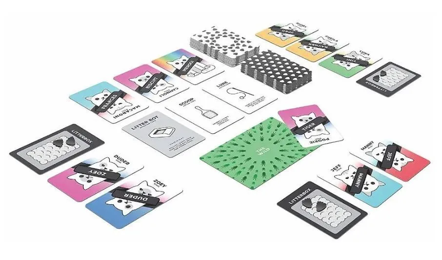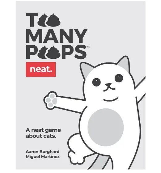 Too Many Poops is a cat collection card game where players compete to become the first to score 10 points of cats in their home. But the more cats you have, the more poops you’ll get—and too many will lose you the game! Adopt cats from the pet store, donate rival cats to other players, and use lures to get you the cats that will score you the most. Will you become the ultimate cat owner, or poop out trying? Features poople tokens and cat cards players can name and draw on!