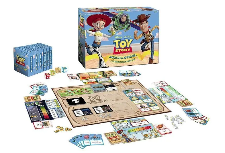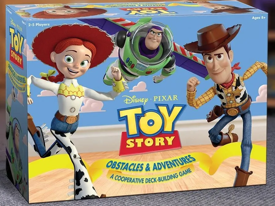 Players work together as their favorite Disney Pixar Toy Story characters from across Pixar Toy Story to enlist the help of Friends, conquer Hazards, and complete Adventures before the bad guys can alter the end of the story. What's Included 1 Game Board 262 Cards (Adventure, Booster, Hazard, Turn Order, You Are A Toy) Chipboard Pieces (35 Insight 25 Imagination 5 Health) 5 Player Boards 6 Adventure Boxes 4 Dice 5 Player Boards 11 Divider Cards 6 Adventure Tracks 6 Zinc Movers 1 Rule Book 5 Rule Sheets