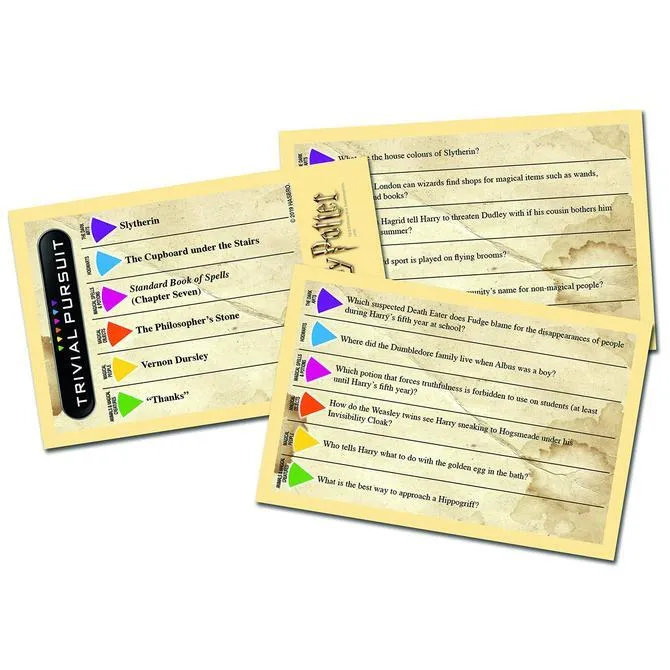 Featuring 600 questions over 100 cards, test your knowledge of the Dark Arts, Hogwarts, spells and potions, magical objects and people, and magical creatures as you compete to be the first to claim six cards and win the game!