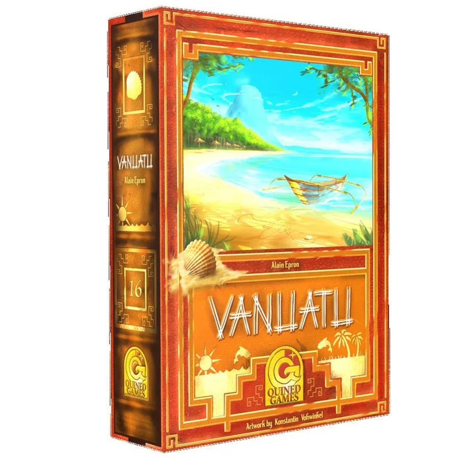 In Vanuatu, you are a Vanuatuan who wants to prosper during the eight turns of the game. In order to prosper, you have to manage with natural resources, rare items, vatus (local currency) and tourists. To earn money or prosperity points, you may also draw on the sand*, carry tourists all over Vanuatu islands, or trade cargo with foreign countries.
