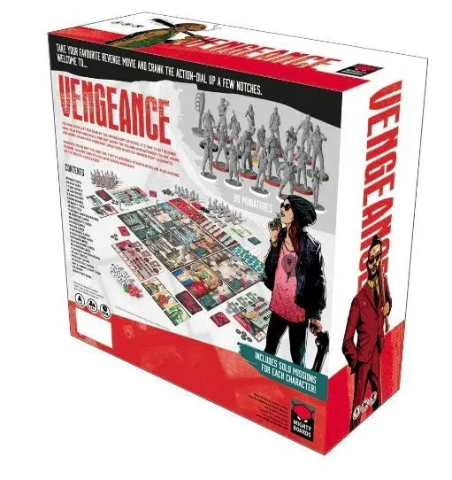 Players score points by killing bosses who wronged them, i.e., matching the figure on their vengeance card with one of the face down Boss cards attached to each den and/or by clearing all minions of a gang which matches the color of a vengeance card they have in play.