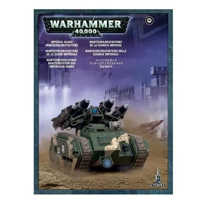This multi-part plastic box set contains 85 components and an Imperial Guard Transfer Sheet with which to make one Deathstrike Missile Launcher or one Manticore Rocket Launcher.