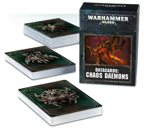 Designed to make it easier to keep track of Tactical Objectives, psychic powers and Stratagems in games of Warhammer 40,000, this set of 80 cards – each featuring artwork on the reverse – is an indispensable tool in the arsenal of any Chaos Daemons gamer. Included: