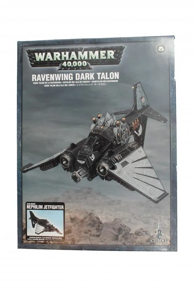 This kit contains 88 components, a flying stem and a large oval base with which to make either a Ravenwing Dark Talon or a Nephilim Jetfigher.