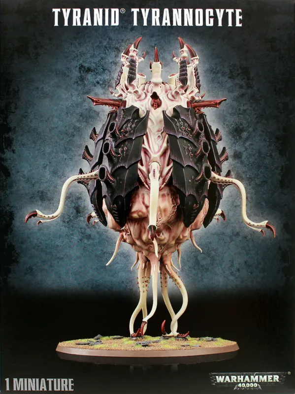 This 124-piece plastic kit makes one Tyrannocyte. The armoured carapace can be modelled closed to the body or open to act as an airbrake as the Tyrannocyte makes planetfall. It is armed with five deathspitters which can be replaced by barbed stranglers or venom cannons.