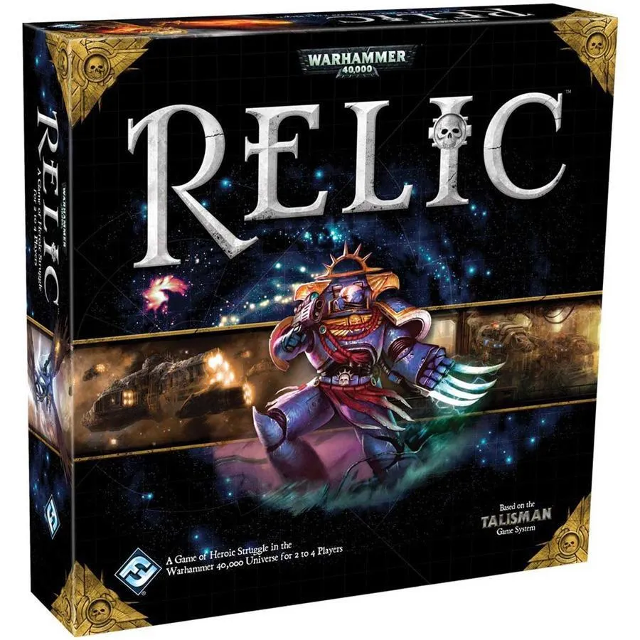 In Relic, two to four players each assume the role of a powerful individual from the Warhammer 40,000 universe, and bravely venture forth to shield the Antian Sector from certain doom. By completing missions and claiming victory over enemies, characters gain rewards and experience, including mighty artefacts called Relics, furthering their chance at defeating whatever evil lies beyond the Warp rift. Based on the classic Talisman system, each turn, a player rolls a single six-sided die before moving their playing piece that number of spaces around the board. That player then draws a card or cards to see what they’ve encountered, pitting their heroic persona against foul enemies, dangerous locations, and fantastic strangers. And all the while, these intrepid heroes rise in power, as they work their way toward the ultimate goal at the center of the board, which could be anything from confronting Kairos Fateweaver, the two-headed Oracle of Tzeentch, to fighting for control over the Lost Flagship of St. Antias. The new WizKids edition features improved and expanded highly-detailed busts of the ten available player characters, as well as upgraded punchboard player and scenario cards. Will you save humanity or fall to the powers of Chaos?