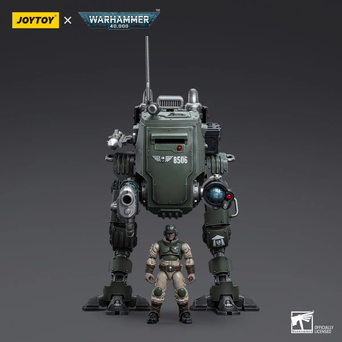 Joy Toy brings the Astra Militarum to life with this Warhammer 40K 1/18 scale set! Utilizing overwhelming numbers combined with devastating artillery and heavy armor, the Astra Militarum or "Hammer of the Empire", forms the largest military fighting force in the galaxy. Comprised of billions of troops, these soliders are often the first and last line of defense for planatery defense.