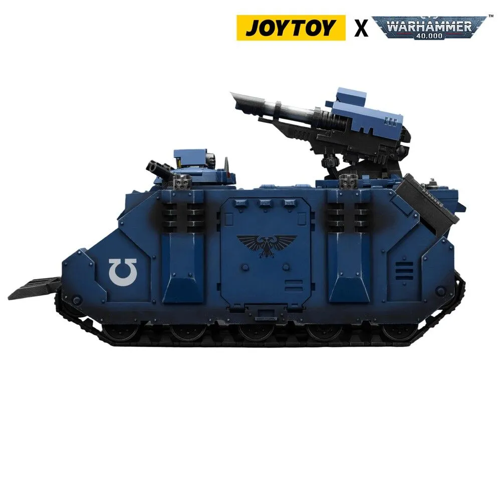 This highly detailed 1/18 scale Warhammer 40,000 action figure features include a fully sculpted interior, rotating turret mounted twin lascannon, opening hatches and doors, and the space to install a full-sized (1/18 scale) JoyToy figure (sold separately) in the pilot seat or roof hatch.