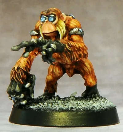 This is a finely detailed resin cast kit that comes in two components and with one 25mm round base, with which to make one Jokaero Weaponsmith.