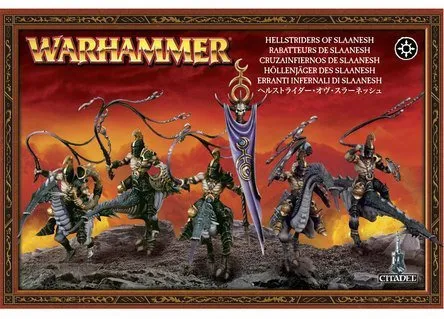 This multipart plastic boxed set contains 108 components and five horse bases, with which to build five Hellstriders of Slaanesh, and is supplied with 5x 60mm oval bases.