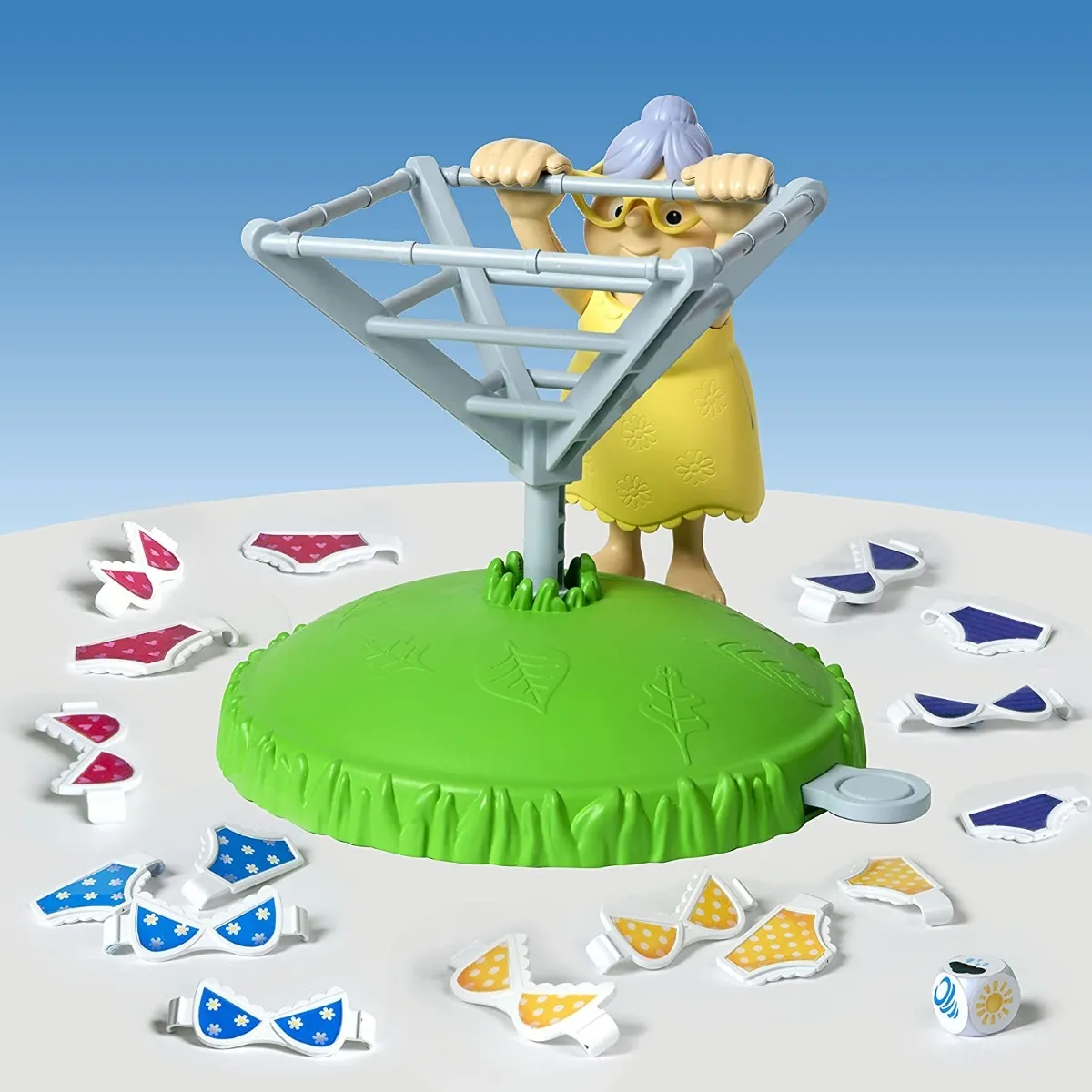 Don't let Granny get her knickers in a twist! Can you help Granny put out her washing? Roll the dice... if it's a sunny day, hang your washing on the line. Roll a cloud and you must miss a go. Roll a rain cloud and you have to take your washing in. Roll a storm and the washing line spins in the tornado and granny loses her clothes! Can you be the first to hang out all of your washing to win?