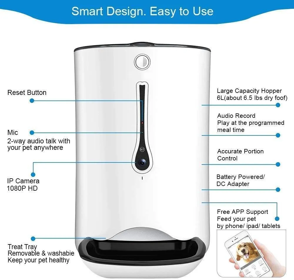6L Automatic Smart Pet Feeder with Wifi & HD Camera App Controlled