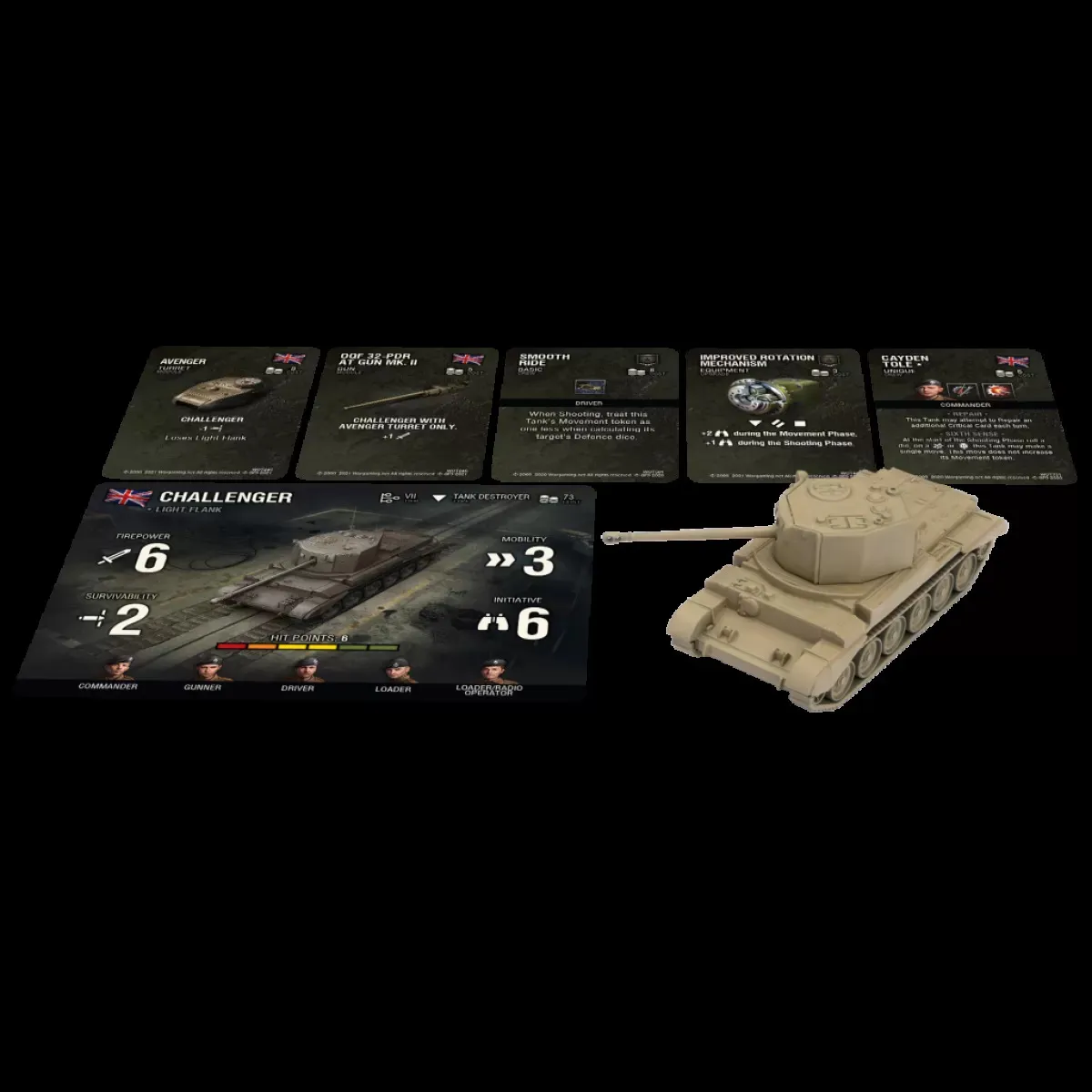 The British Challenger is the perfect tank-destroyer for an aggressive commander, combining 3 Mobility to quickly relocate and find enemy flanks with 6 Firepower to dish out huge damage, whilst having great staying power with good Survivability and Hit Points. Mounting the Avenger Turret paired with the OQF 32-PDR AT Gun Mk. II turn the Challenger into a glass canon, trading some of its Survivability for even more Firepower for when you really need to blow some tanks up.