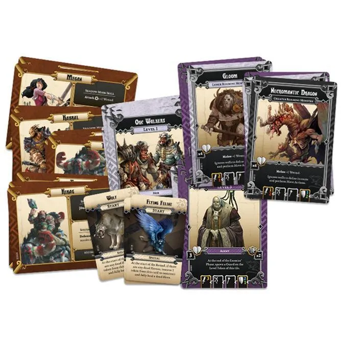 With the Green Horde: Massive Darkness Crossover, players can use all the characters and enemies from Green Horde in their games of Massive Darkness. It contains 64 cards, comprised of: 17 Heroes, 5 Mobs, 2 Agents, 7 Roaming Monsters, and 3 Familiars. These cards encompass characters and monsters from the Green Horde base game, No Rest for the Wicked, Friends and Foes, and the Adrian Smith, Paul Bonner, and Sean A. Murray Guest Boxes. Note: This item only contains stat cards. It does not have the miniatures for the listed sets.