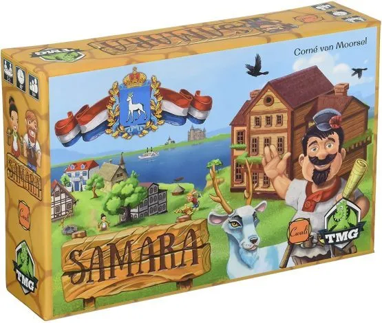 Building houses or special projects. Getting a new worker or exercising to become a stronger worker. Going on vacation. The spaces on the game board determine how many workers (1-4 on the left board axis) are occupied how many months (1-9 on the bottom board axis). Players plan to let their workers spend time effectively, choosing when to invest and when to build for prestige. The prestige points determine who is the best foreman of Samara.