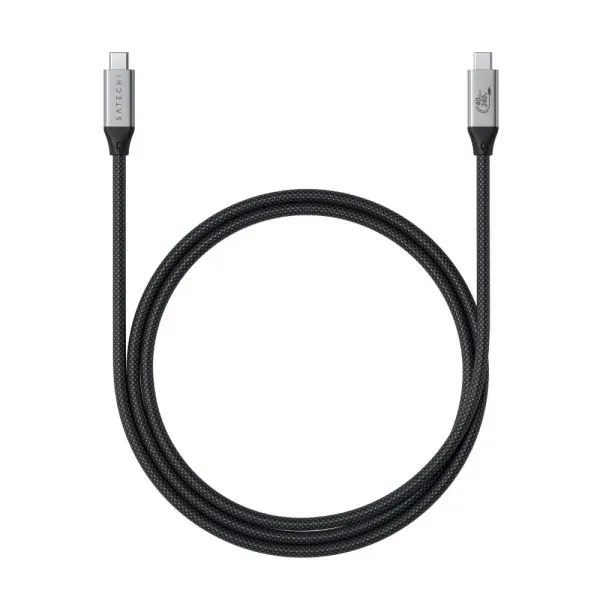 The USB4 Pro Cable features a durable black braided design that coils without tangling for easy usage, storage, and extended longevity. It pairs perfectly with all Satechi wall and desktop chargers, and Apple power adapters.